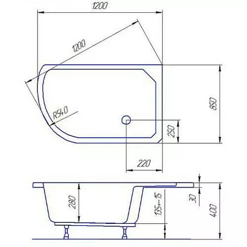 Акриловий кутовий напівкруглий глибокий душовий піддон CARAPELLE 120x85x28