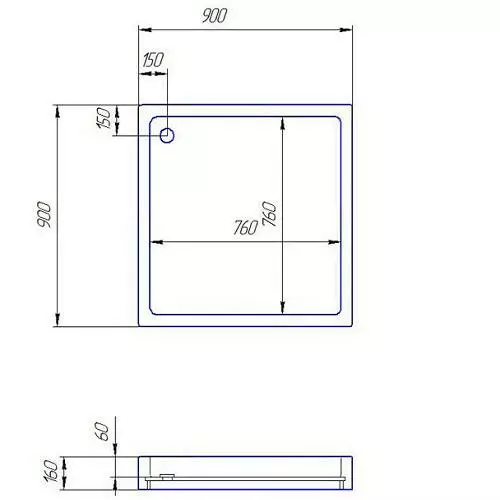 - Форма поддона: Квадратная