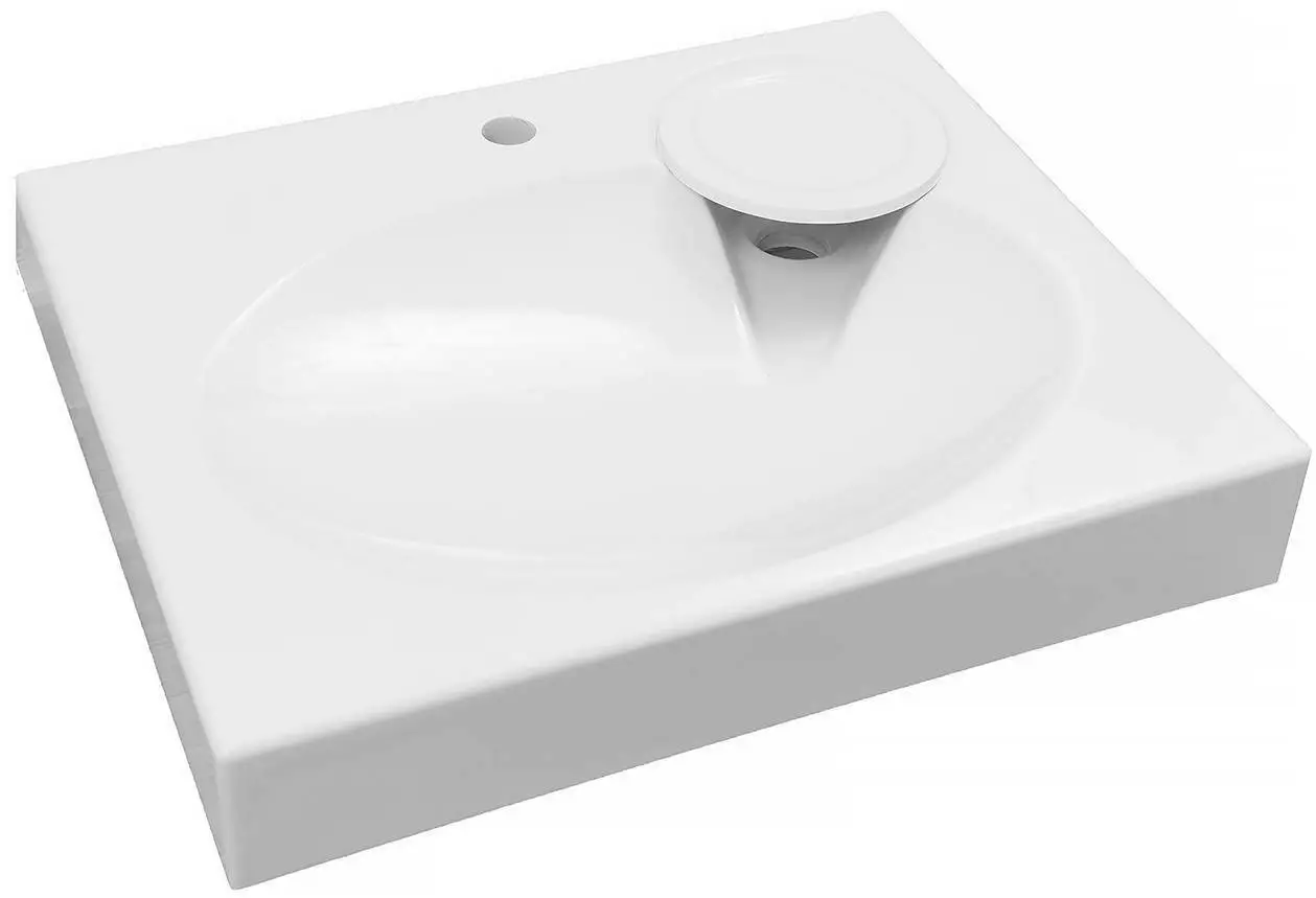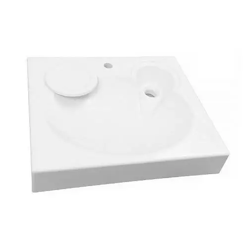 Підвісний умивальник над пральною машиною з литого акрилу посилений декількома шарами полімерних матеріалів і смол, має: