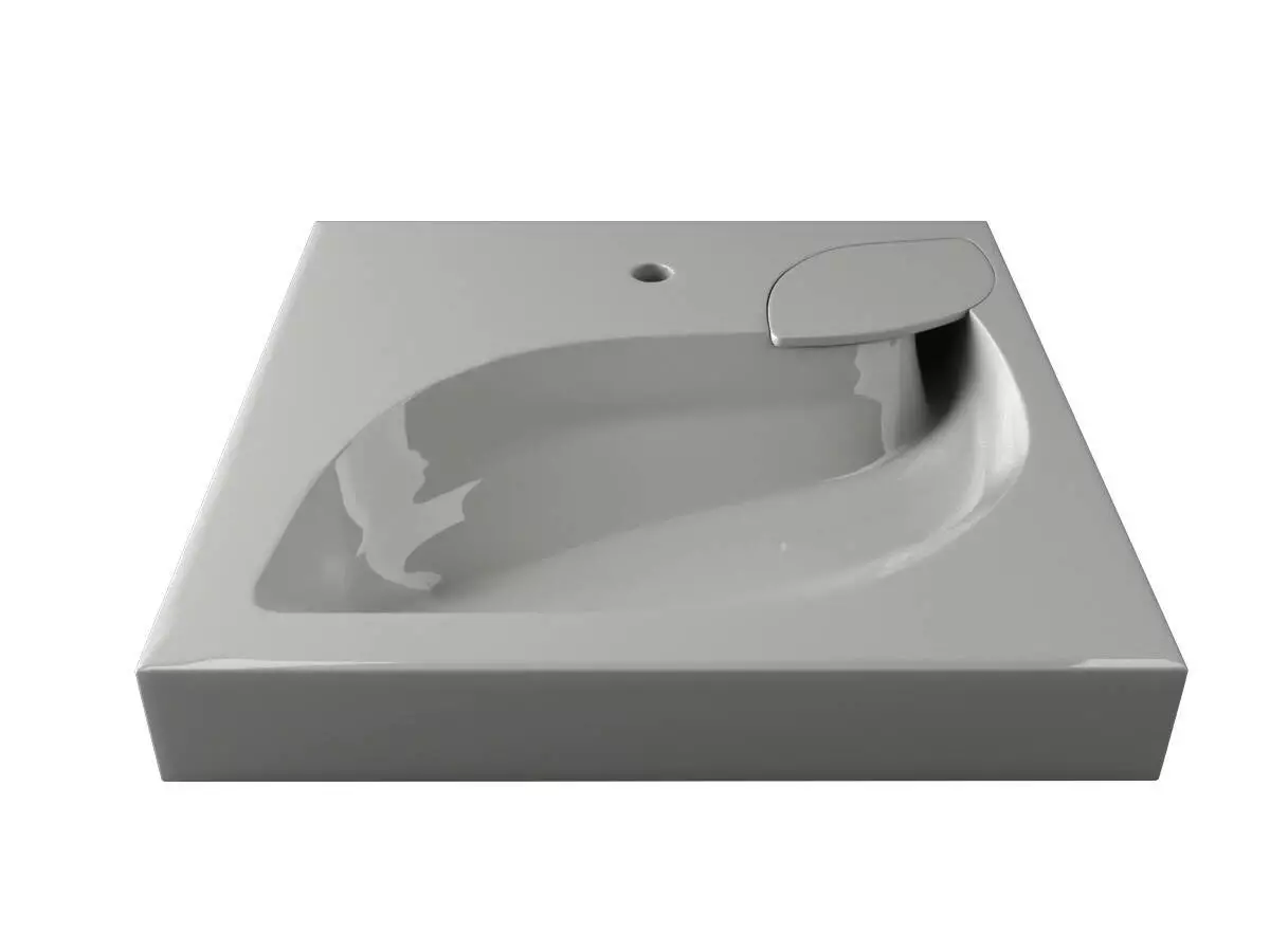 Підвісний умивальник над пральною машиною з литого акрилу посилений декількома шарами полімерних матеріалів і смол, має: