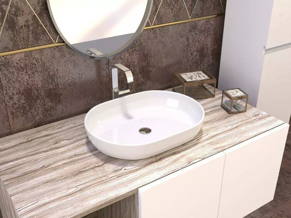 Ідеальний для накладного монтажу на тумбу або стільницю.